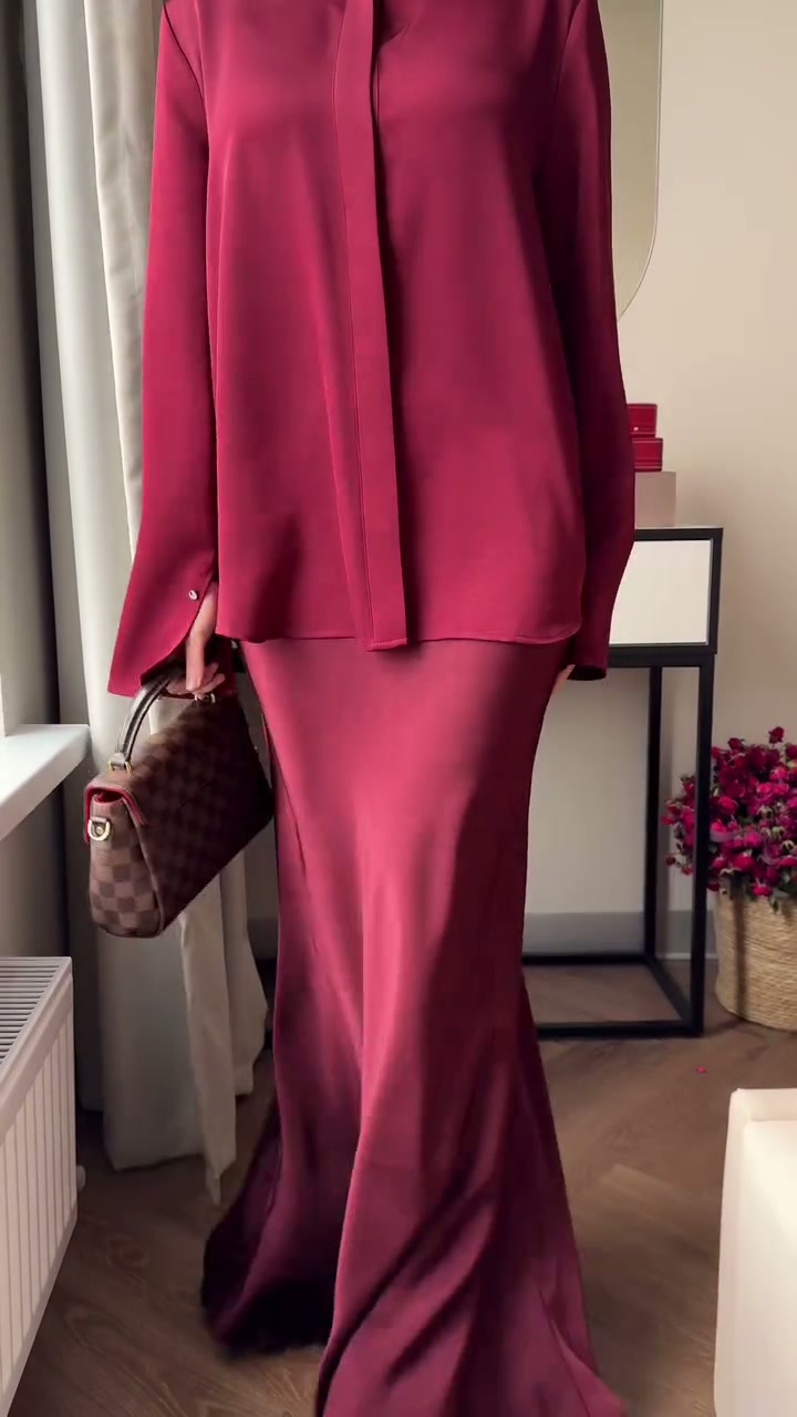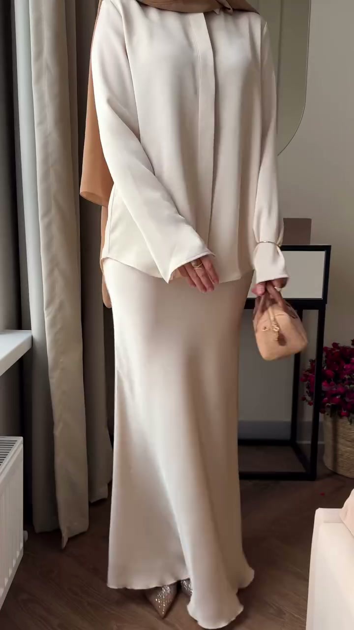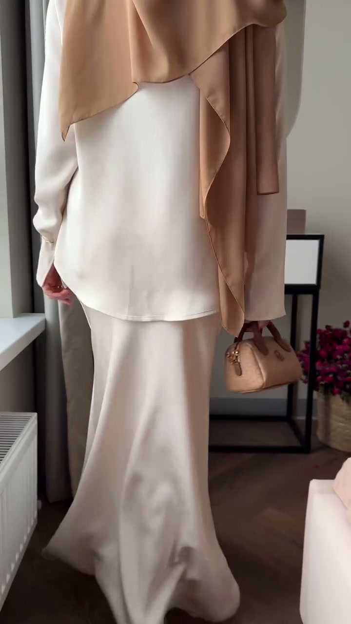 - Die Kleidung ist im modischen Modest-Fashion-Stil gehalten, kombiniert mit einem braunen Hijab und einem schmalen Taillengürtel. Die Kleidung ist im modischen Modest-Fashion-Stil gehalten, kombiniert mit einem braunen Hijab und einem schmalen Taillengürtel.