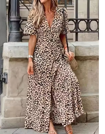 - Leopardenmuster V-Ausschnitt Kleid – Sexys kurzärmeliges Kleid für Frühjahr/Sommer Damenbekleidung Leopardenmuster V-Ausschnitt Kleid – Sexys kurzärmeliges Kleid für Frühjahr/Sommer Damenbekleidung